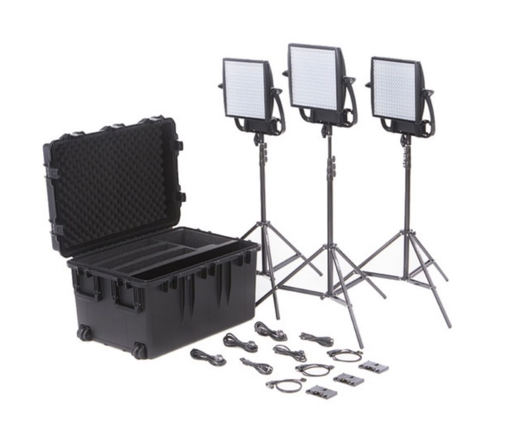 Pronto para a estrada, o Astra 6X Traveler Bi-Color Trio 3-Light Kit com suportes de bateria Gold Mount da Litepanels é construído em torno de uma fonte de luz com um CRI elevado, LEDs de montagem de superfície, e uma temperatura de cor variável desde o tungsténio ao equilíbrio da luz do dia. O kit inclui 3 luminárias Astra 6X, cada uma com um suporte de luz de 6,2′ e um suporte de montagem em ouro para uso opcional de bateria. Uma caixa Pelican dura com rodas está incluída para armazenamento e transporte.